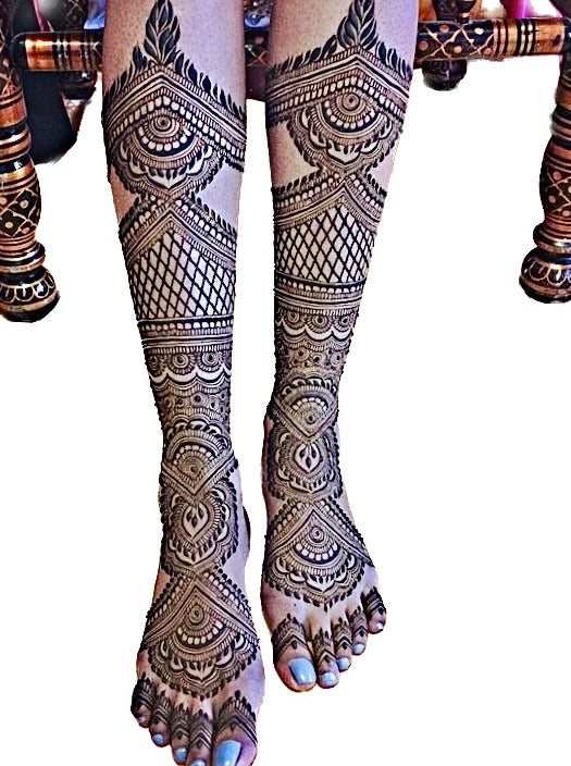 Enjoy an intricate bridal henna design. The price vary according to the length so choose your preferred length. The prices are for both legs, only the front side. (To do a back or sole of the feet is an additional cost)